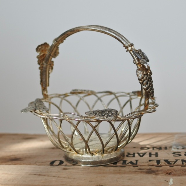 葡萄のバスケット From U.S.A ずっしりと骨太でしっかりしたつくりながら 繊細で優美なシルエットを持つ 絶妙バランスのバスケット。 コンパクトなサイズながら インテリアとしてじゅうぶんに存在感を発揮してくれます。 取っ手は自立するのでぜひ立てて このころんと可愛らしいフォルムを 楽しんでください。 横幅:約19cm 奥行:約19cm 高さ:約19cm(取っ手を立てた状態) :約12.5cm(取っ手を倒した状態) 重さ:約505g ※若干の採寸誤差はご容赦ください。 ヴィンテージ、アンティークと表記のある商品は すべて海外で買い付けてきた古いものです。 使用感、傷、汚れ、経年による変色の見られるものもございますが、 古いものならではの魅力としてお楽しみいただけますと幸いです。 気になる点、ご不明の点がありましたら、 ご購入前にお問い合わせください。 写真は自然光で撮影し、可能なかぎり実物に近い色味になるよう調整しておりますが、 撮影環境、モニターの環境設定により 実物と異なって感じられる場合がございます。 ご了承くださいませ。 オンラインストアで販売中の商品は 対面イベントで販売することもございます。 在庫状況は随時更新いたしますが、 ご購入のタイミングによっては商品をご用意できない場合がございます。 その際は誠に申し訳ございませんが、 ご注文をキャンセルさせていただきます。 ご不便をおかけしますが、ご理解のほどよろしくお願いいたします。