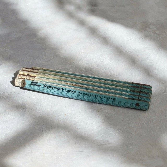 ヴィンテージ 折りたたみウッドスケール From Bulgaria 使い込まれた木の質感、かすれや汚れ具合が魅力のフォールディングスケール 広げれば最大200cmまで計測可能 実用はもちろん、壁に掛けたり棚に並べたりして空間の演出にも 横幅:約24cm 奥行き:約1.6cm 高さ:約3.5cm ※若干の採寸誤差はご容赦ください。 ヴィンテージ、アンティークと表記のある商品は すべて海外で買い付けてきた古いものです。 使用感、傷、汚れ、経年による変色の見られるものもございますが、 古いものならではの魅力としてお楽しみいただけますと幸いです。 気になる点、ご不明の点がありましたら、 ご購入前にお問い合わせください。 写真は自然光で撮影し、可能なかぎり実物に近い色味になるよう調整しておりますが、 撮影環境、モニターの環境設定により 実物と異なって感じられる場合がございます。 ご了承くださいませ。 オンラインストアで販売中の商品は 対面イベントで販売することもございます。 在庫状況は随時更新いたしますが、 ご購入のタイミングによっては商品をご用意できない場合がございます。 その際は誠に申し訳ございませんが、 ご注文をキャンセルさせていただきます。 ご不便をおかけしますが、ご理解のほどよろしくお願いいたします。