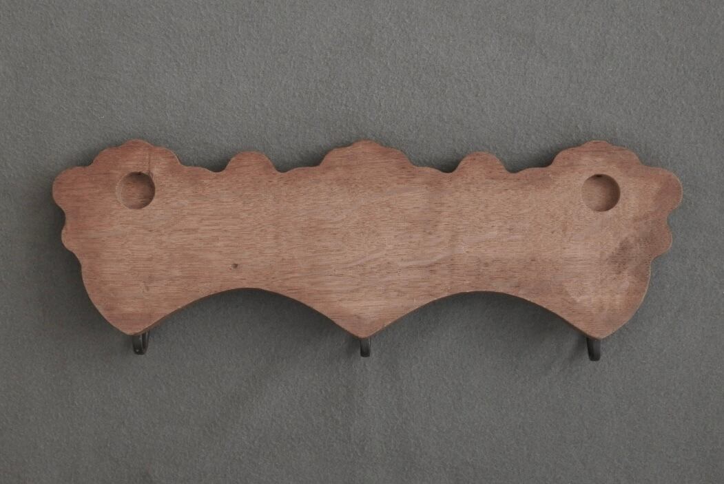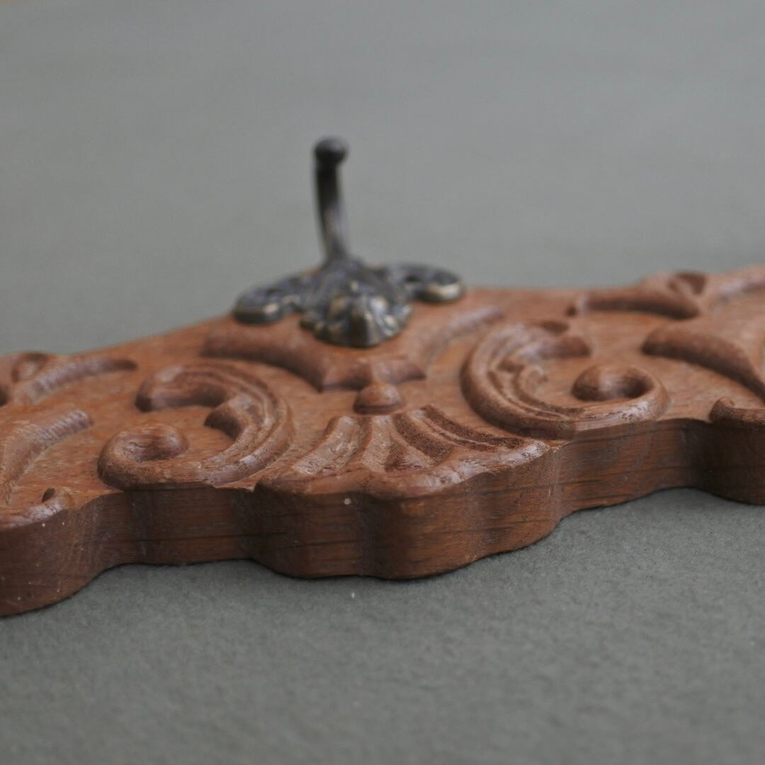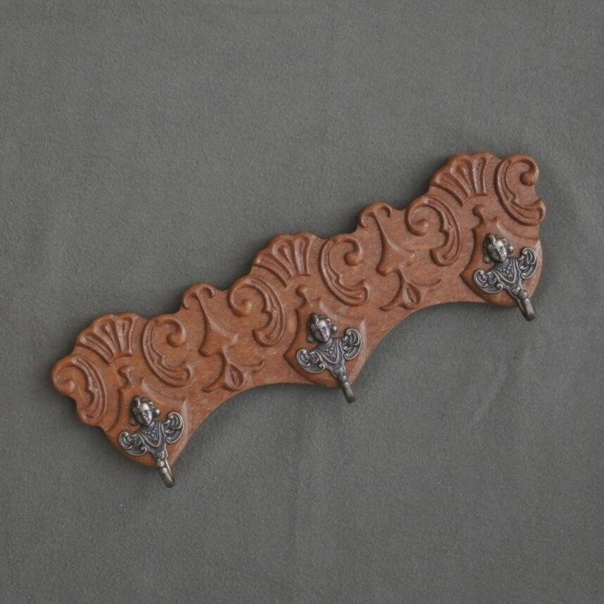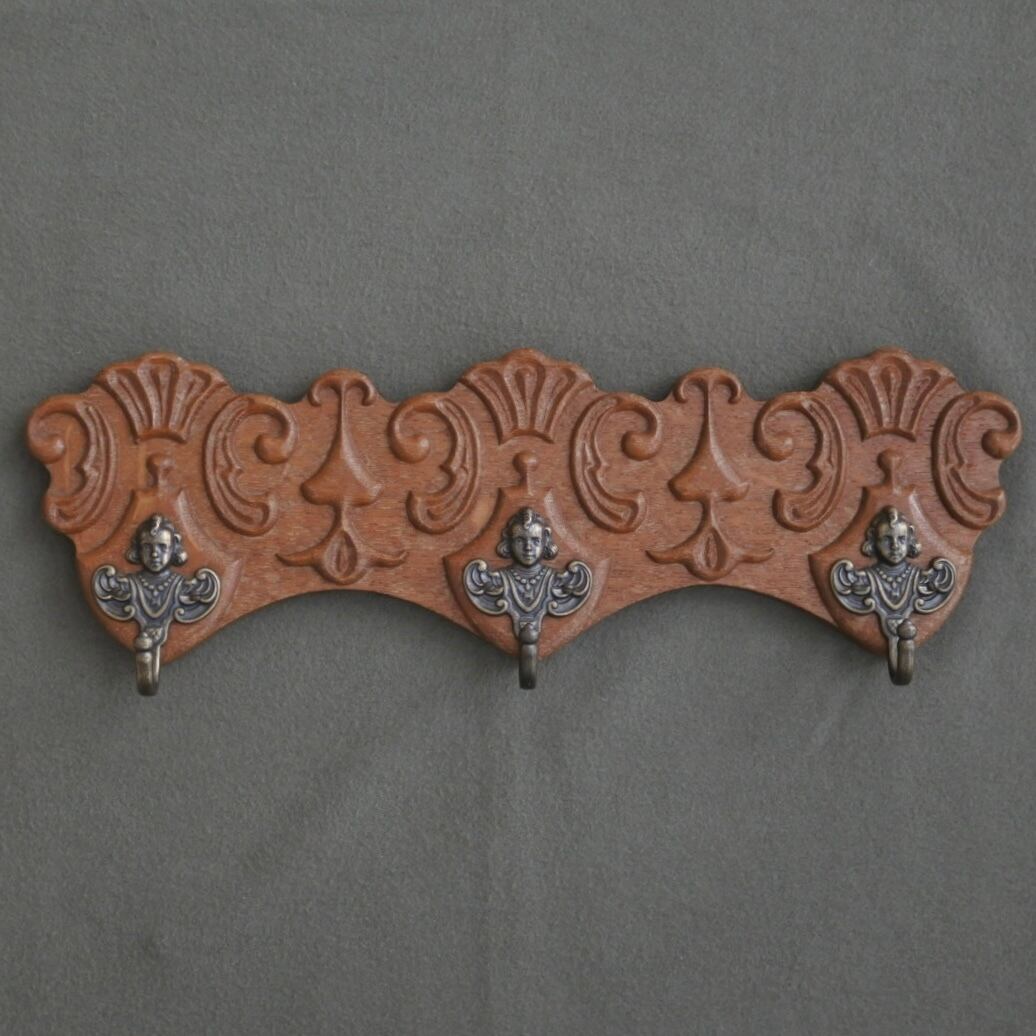 オーク材の本体に真鍮の天使ちゃんフックのついたウォールハンガー