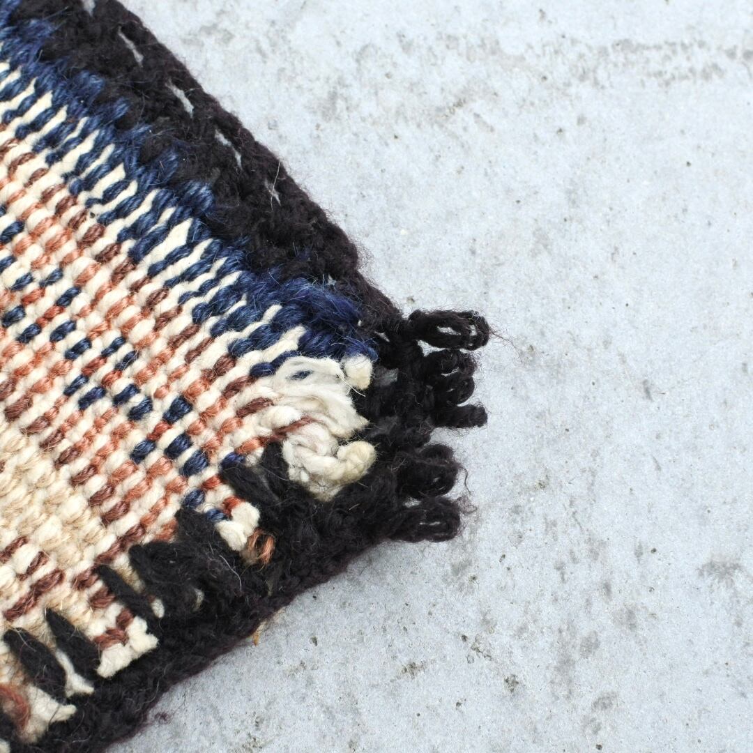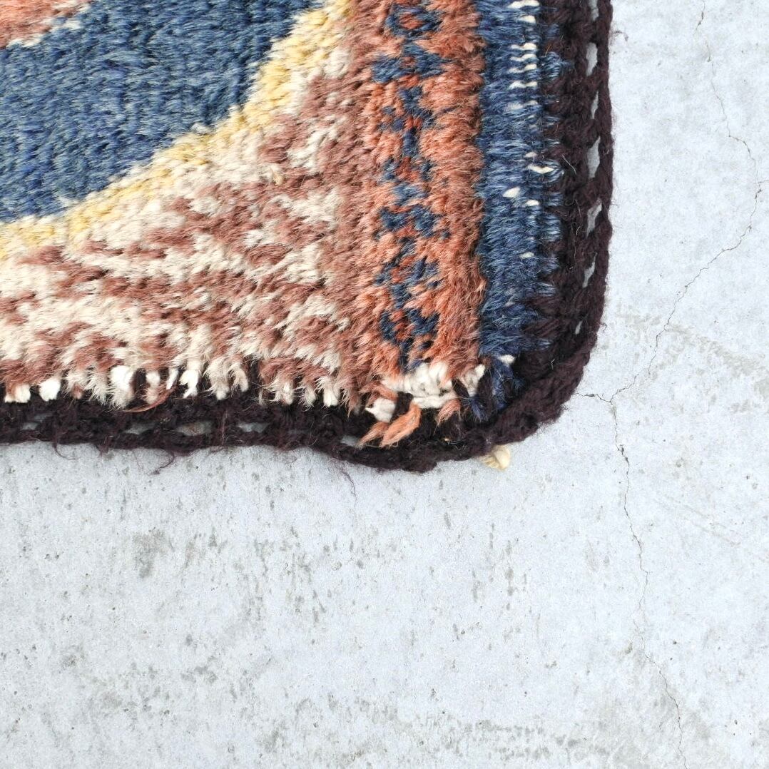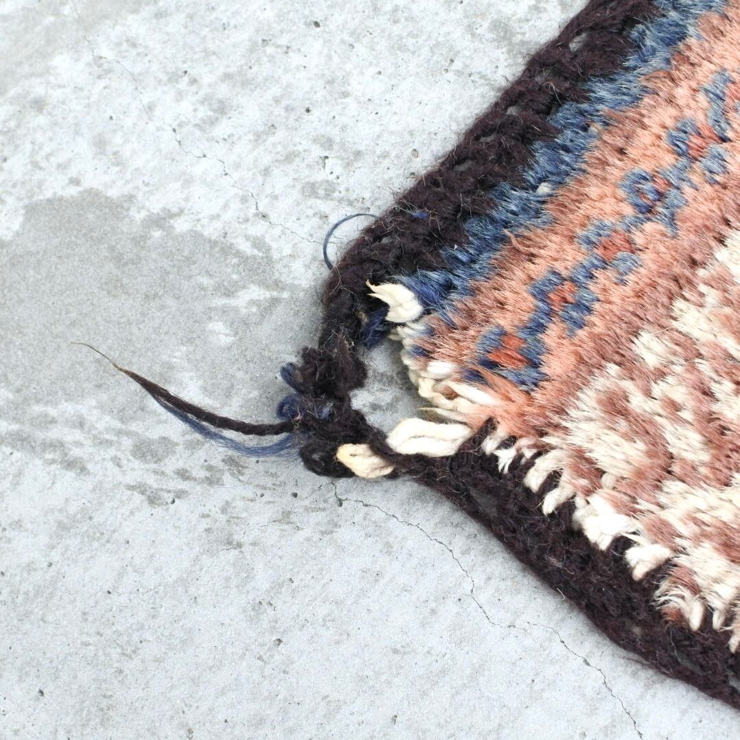 手織りのヴィンテージラグには使用感、傷、汚れ、経年による変色、補修跡、歪みの見られるものもございますが、