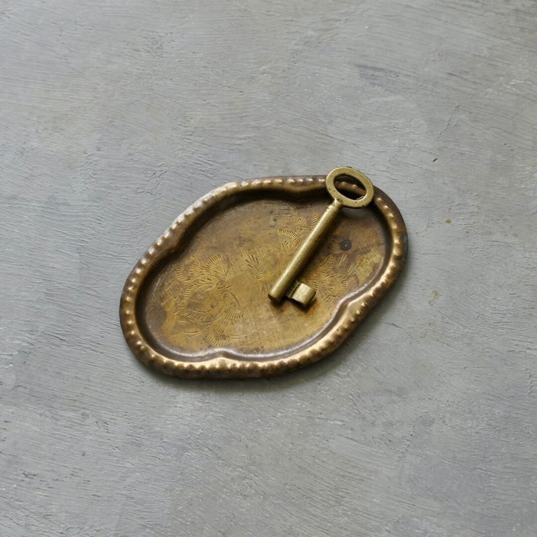 ヴィンテージ お花文様の真鍮トレイ