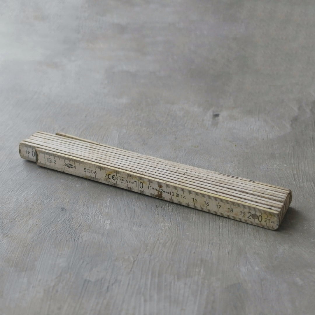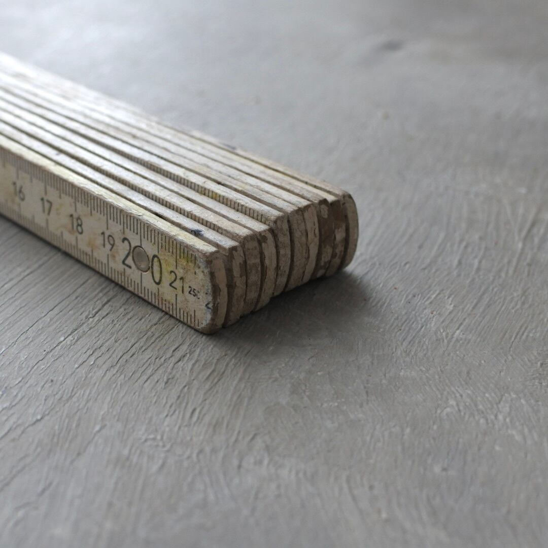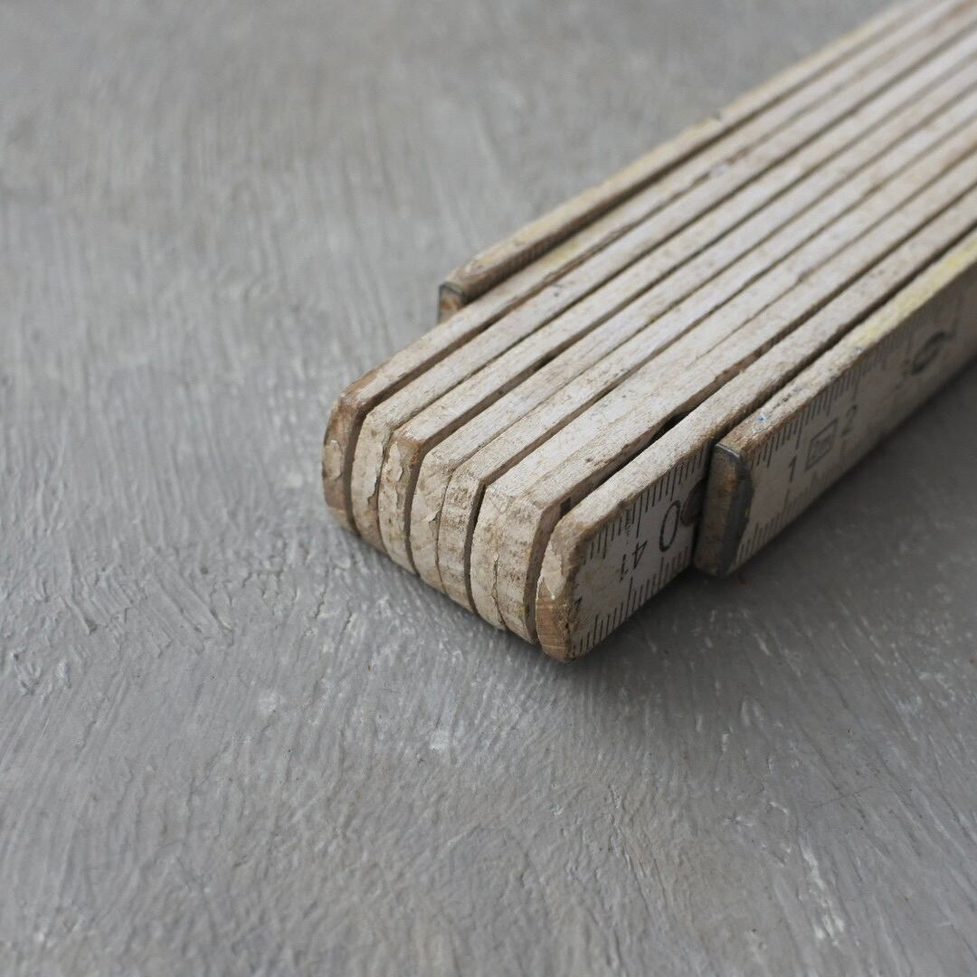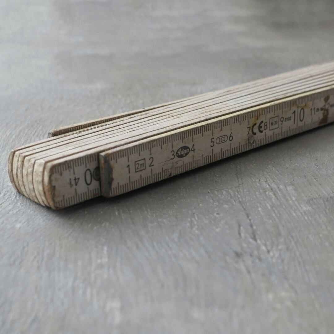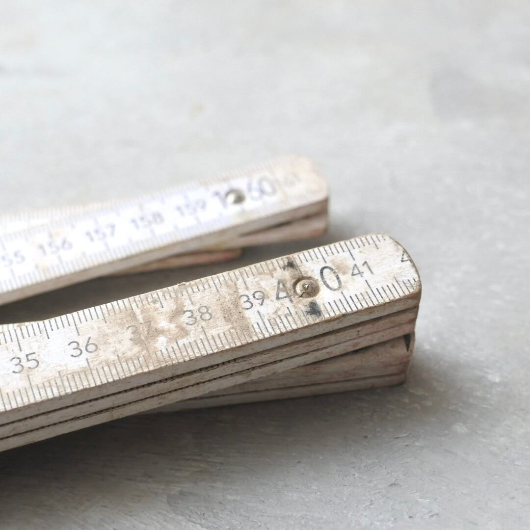 使い込まれた木の質感、かすれや汚れ具合が魅力のフォールディングスケール