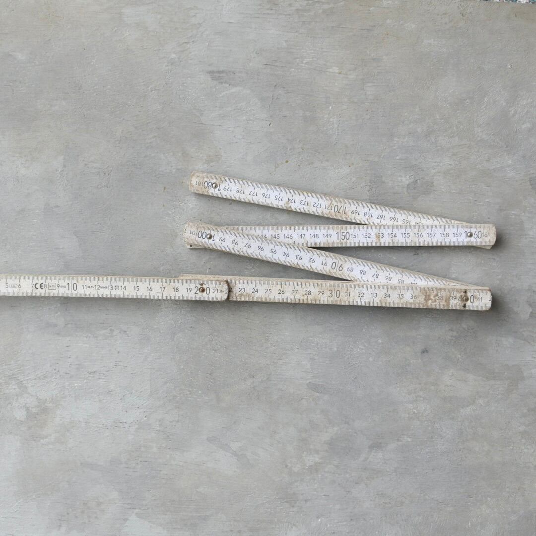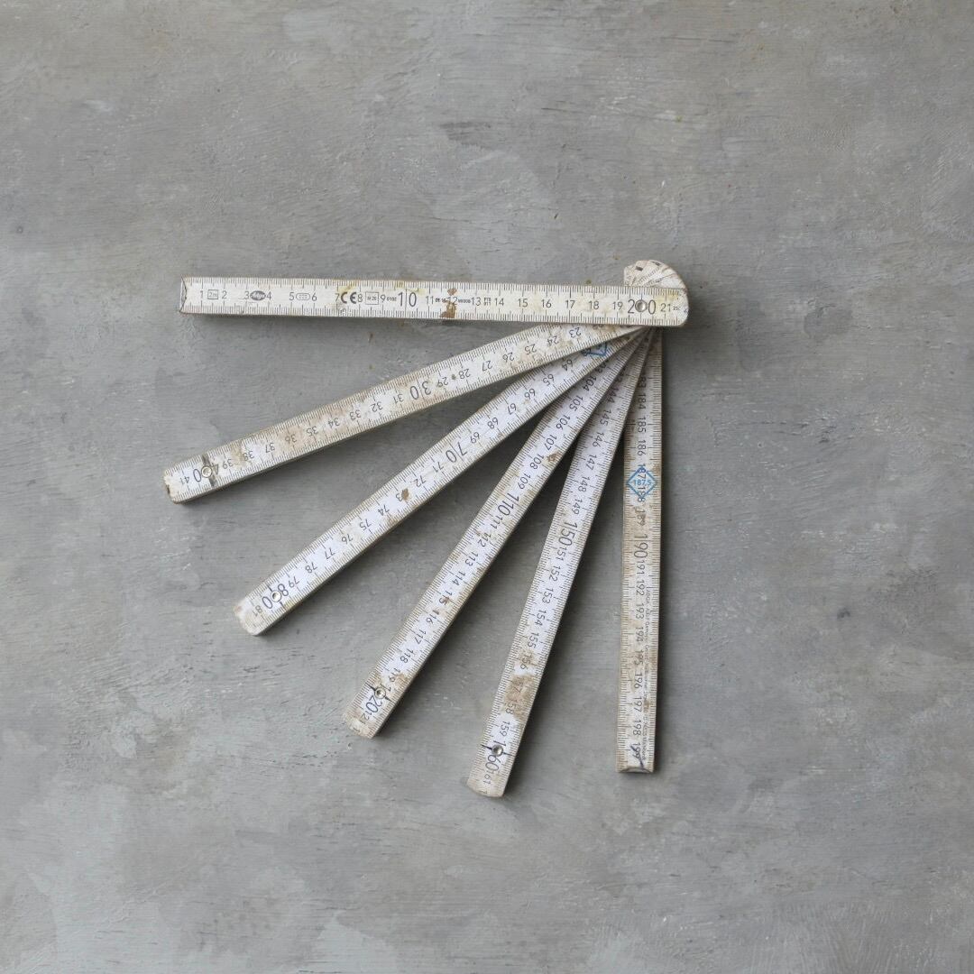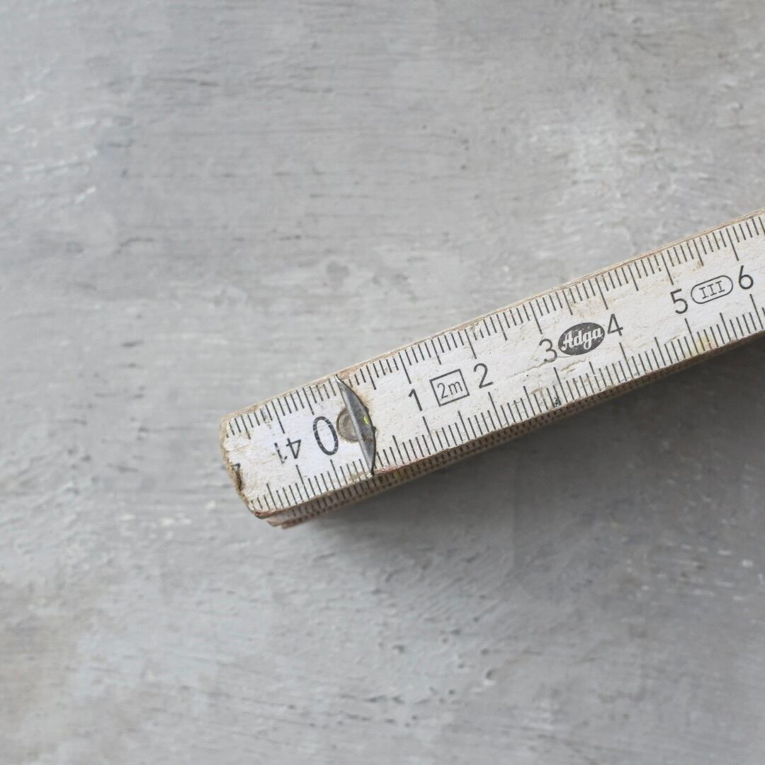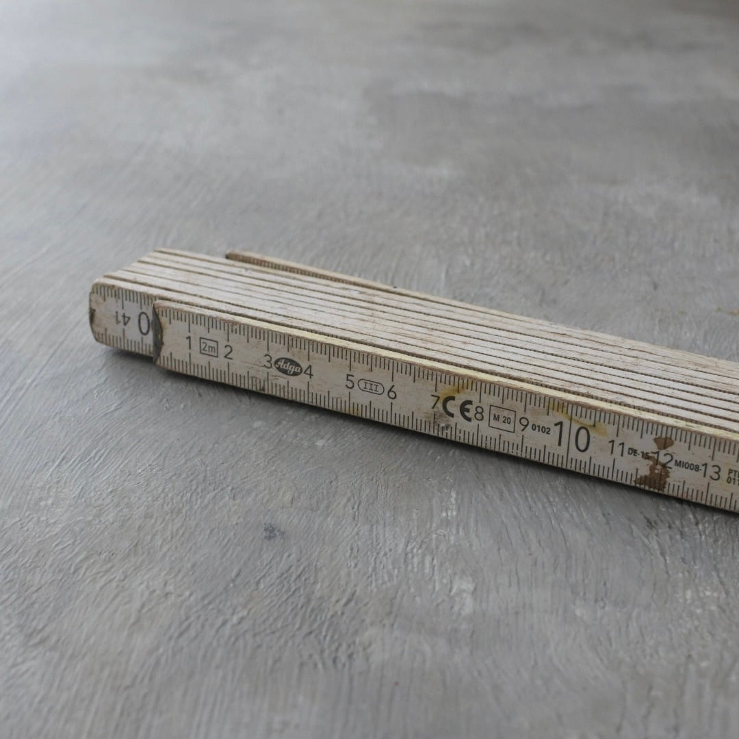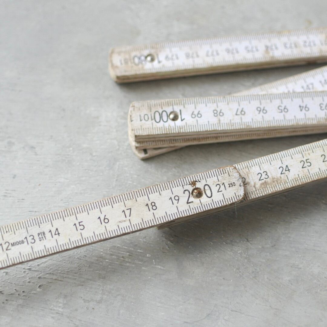 使い込まれた木の質感、かすれや汚れ具合が魅力のフォールディングスケール