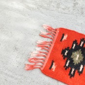 手織りのヴィンテージラグには使用感、傷、汚れ、経年による変色、補修跡、歪みの見られるものもございますが、