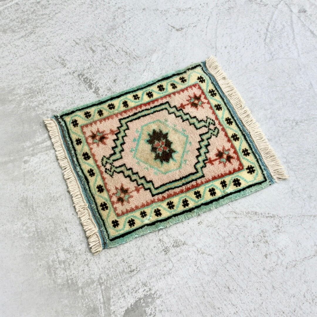 ヴィンテージ 手織りのスモールラグラグ 52×42