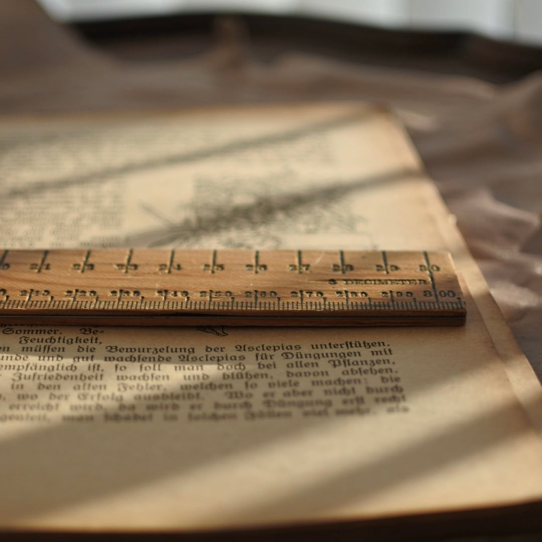 表側でインチ(12インチ)、裏側でセンチ(センチ)とミリ(300ミリ)が測れる定規