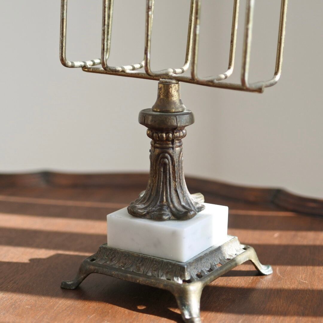 Vintage Italian Brass & Marble Base Pedestal Napkin Holder