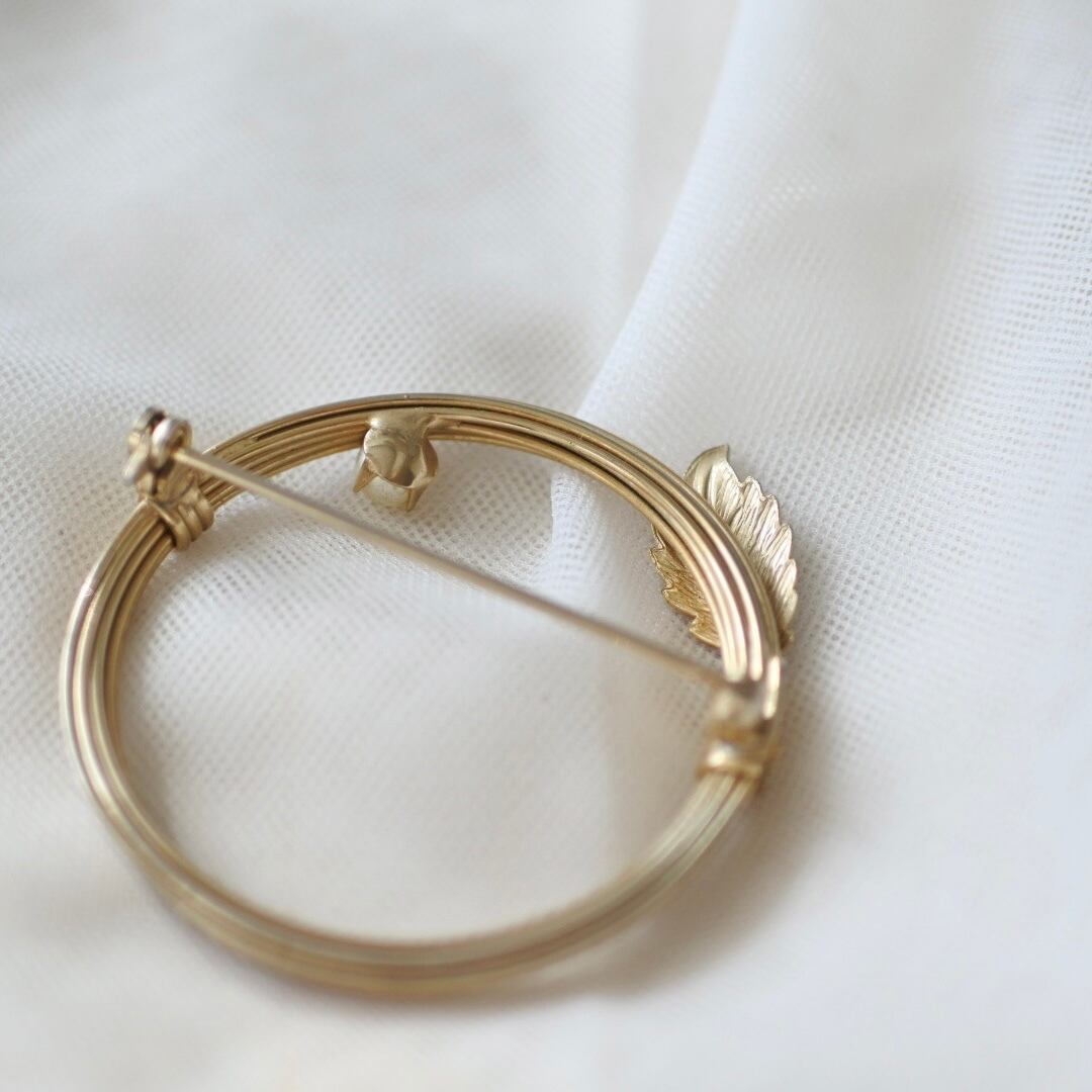 ヴィンテージ 葉っぱとパールのリースブローチ